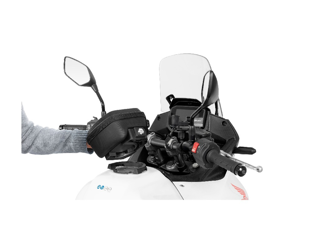 SHAD's Click System is the evolution of Pin System tank bag fitting. It stands out for its ease of use and installation on the motorcycle, and because of the push button which allows quick unblocking by only pressing the button.