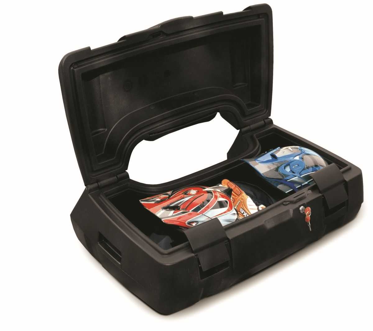 Quad case with capacity for two full face helmets. It includes a high security lock and a reflector. Fitting included.
