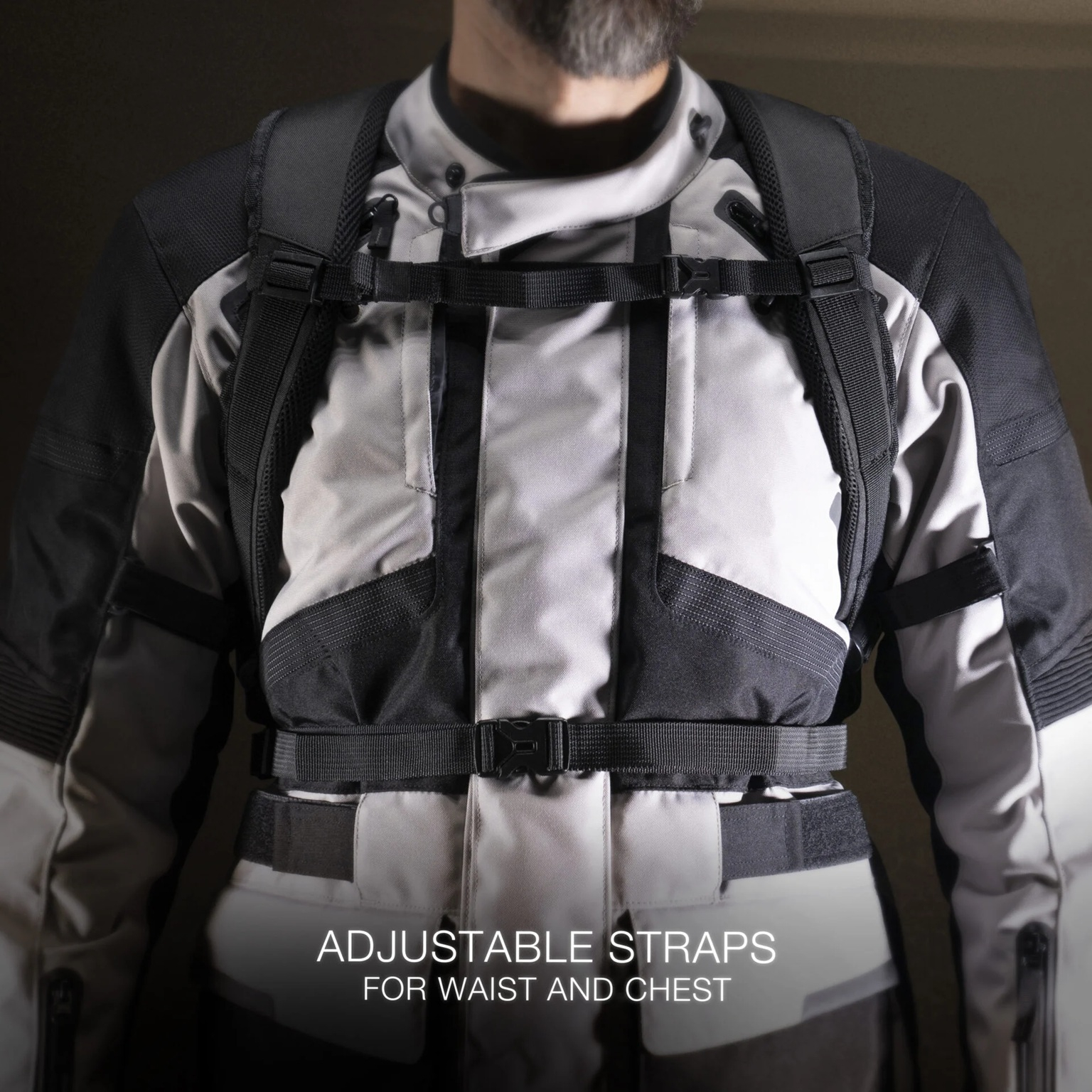 • Adjustable straps for waist and chest.