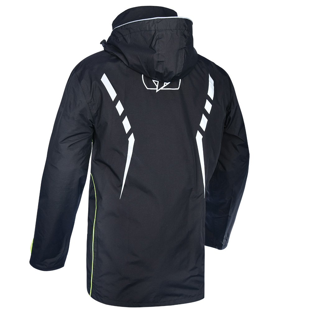 Rezistent la apa. Complet aliniat. Reglaje pentru brate si incheieturi. Cusaturi lipite rezistente la apa. Detalii reflectorizante de vizibilitate ridicata.