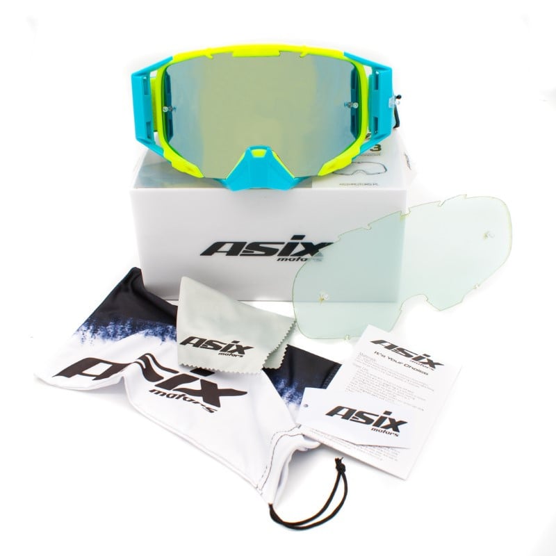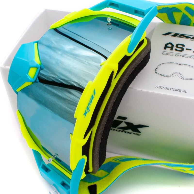 Ochelari cross/atv/enduro, Asix AS3, lentila albastra, culoare rama lime/albastru mat