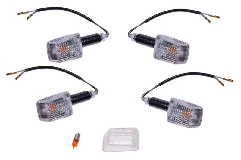 Set 4 mini semnalizari, moto carbon + sticla si bec de rezerva