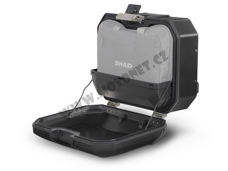 The complete set of SHAD TERRA BLACK aluminum side cases includes left and right black case TR36 with a capacity of 36L The set contains everything you need to mount both suitcases to the motorcycle.
