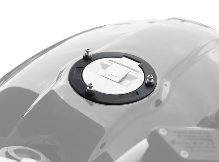 The innovative PIN SYSTEM secures the tank bag to the motorcycle in a safe and easy way. 3 or 4 of the original gas cap screws are replaced with the discrete 'pins', making the installation very simple and done in only a few minutes.
