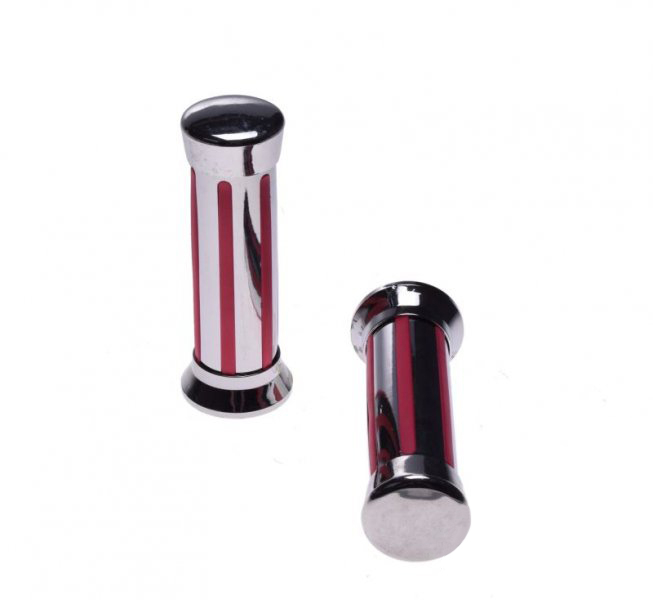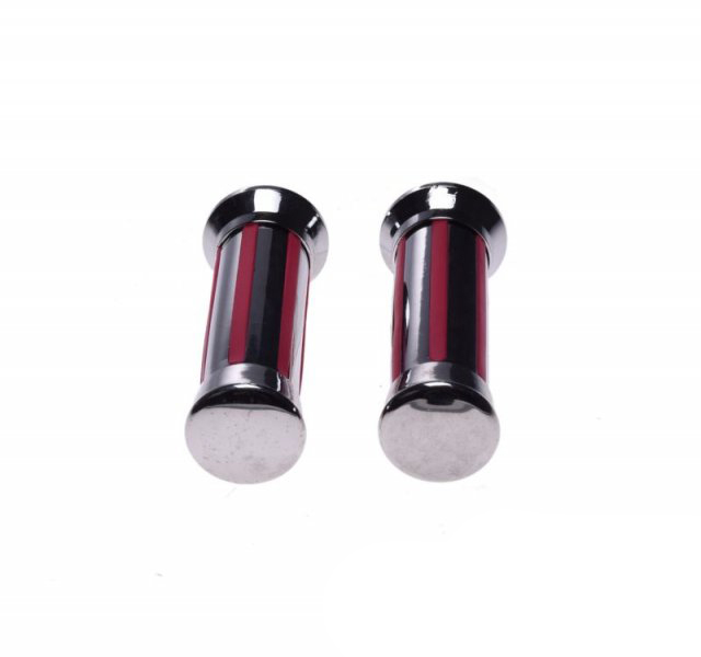 Mansoane moto metal si cauciuc, culaore crom/rosu