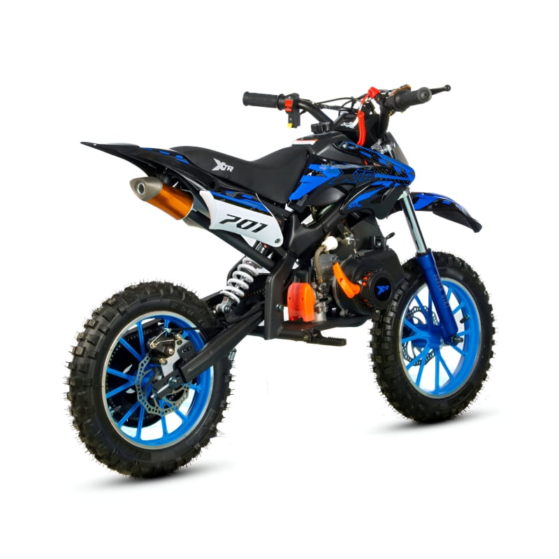 Mini Cross XTR 701, 50cc, 2 timpi, pornire sfoara, roti 10 inch, culoare negru/albastru