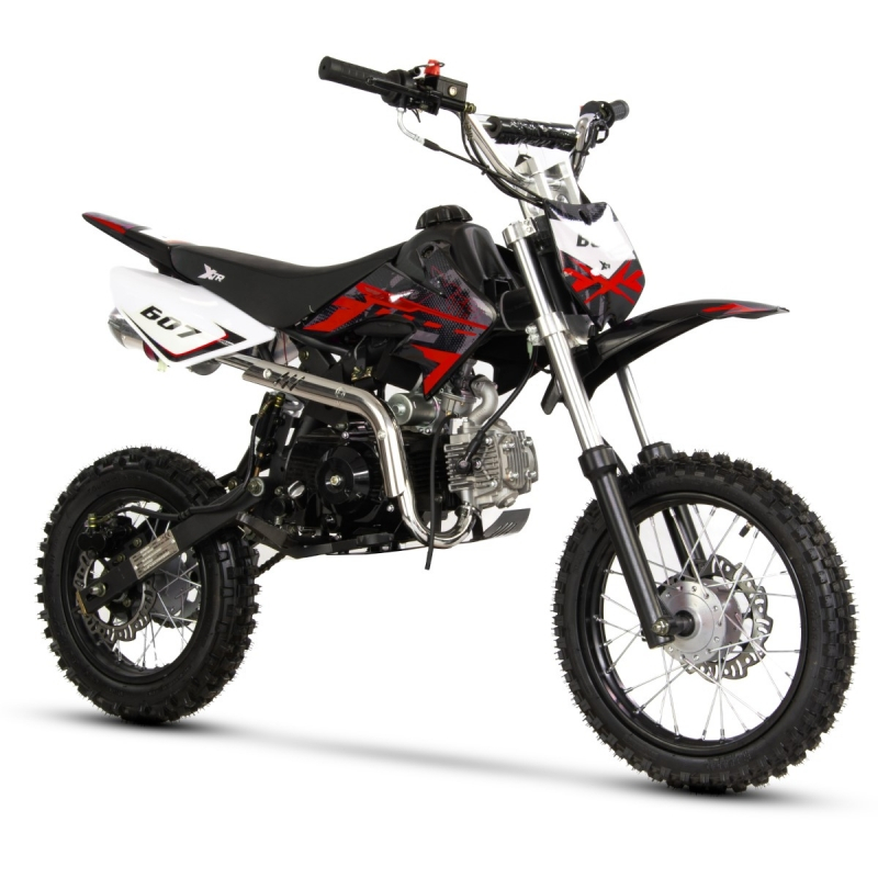 Motocicleta Cross/Enduro copii 4T XTR 607M, 125cc, roti 14/12, pornire pedala starter, pedala schimbator, culoare negru/rosu