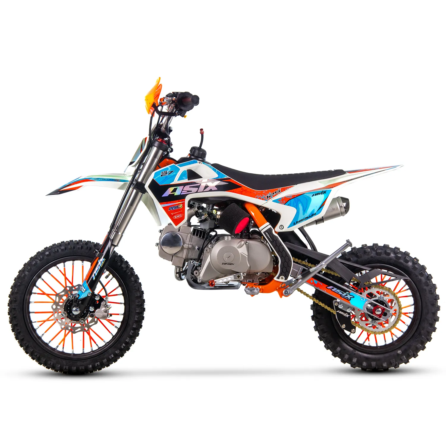 Motocicleta Enduro/Cross Asix XB27 A1, 125cc, 4T, roti 14"/12", pornire electromotor, culoare portocaliu/albastru