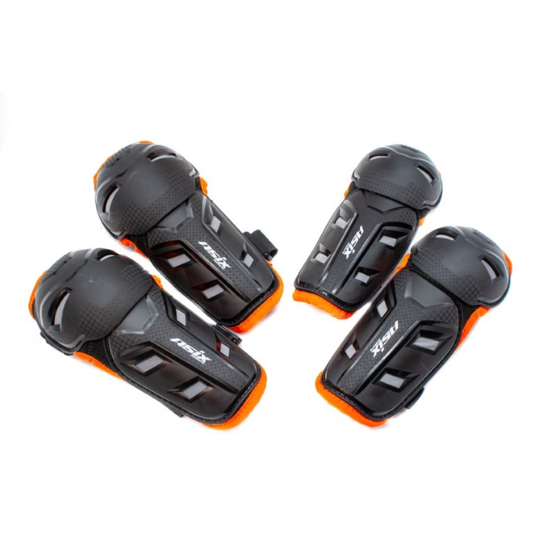 Set protectie corp, genunchiere si cotiere, cross/enduro/atv, copii Asix AS1, marime universala, culoare negru/portocaliu