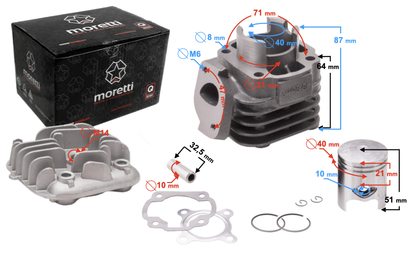 Set motor cilindru si chiuloasa, Minarelli orizontal, 40mm, AC bolt 10mm