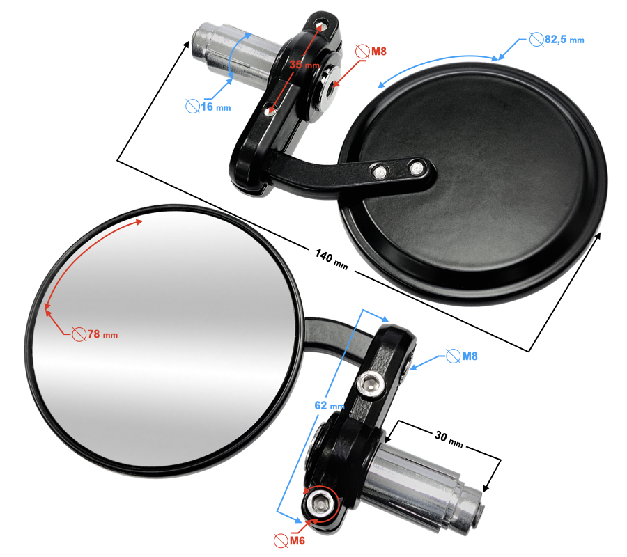 Set oglinzi moto, rotunde, montaj in capatul ghidonului, culoare negru