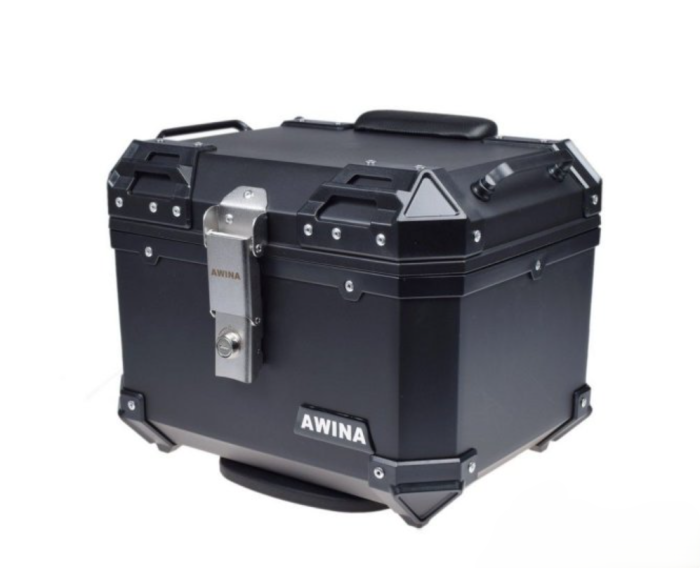Cutie portbagaj pentru motocicletă de 35 de litri, de culoare neagră, marca Awina. Ideală pentru a transporta bagaje în siguranță și cu stil.