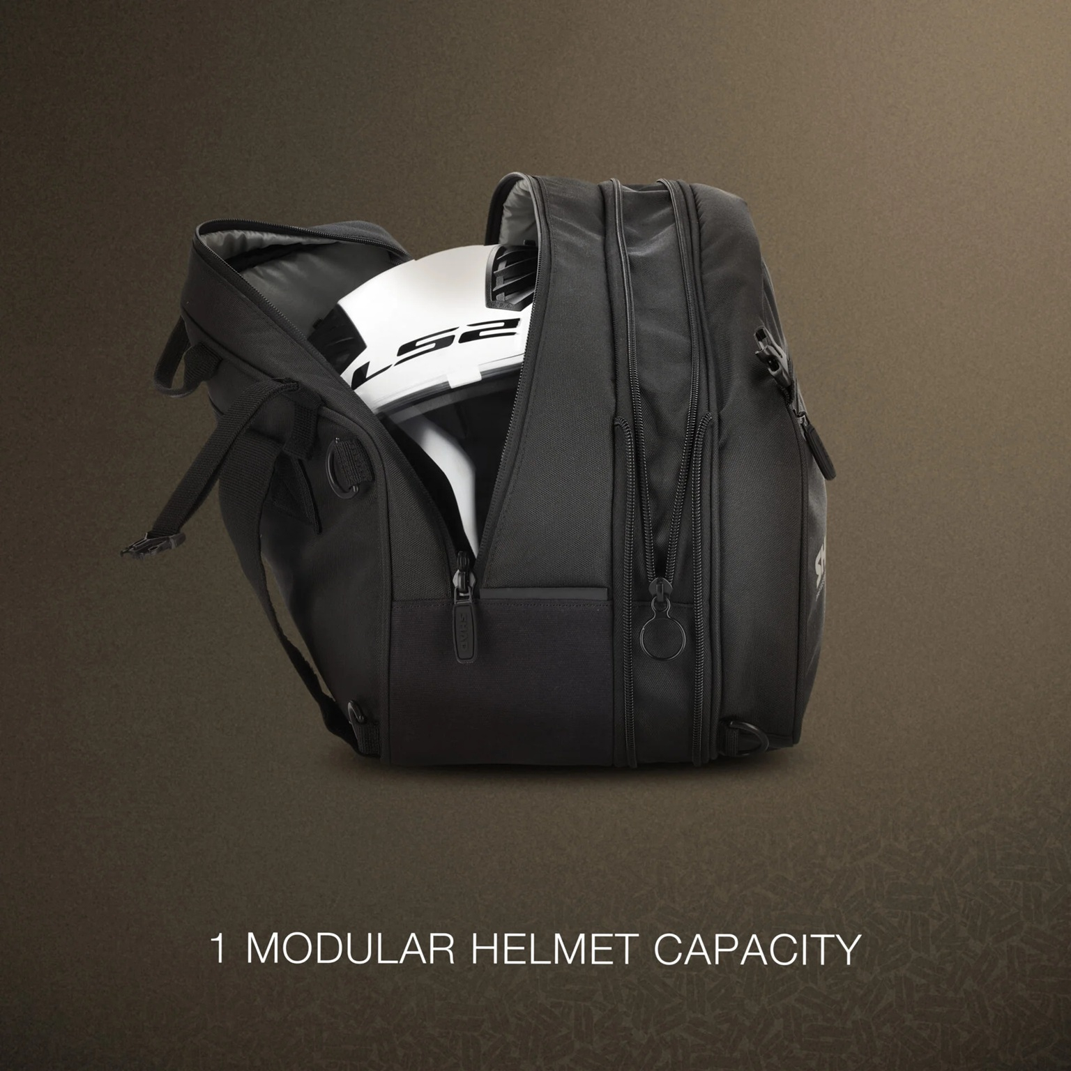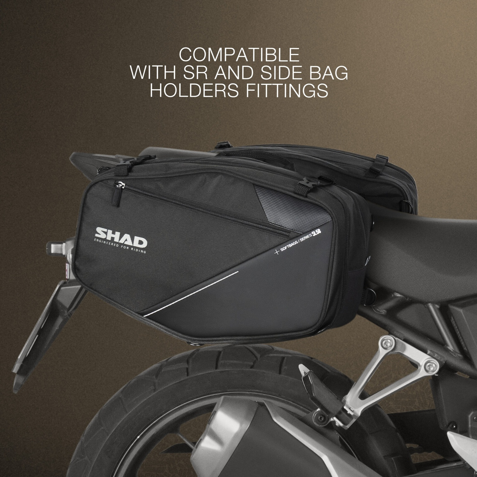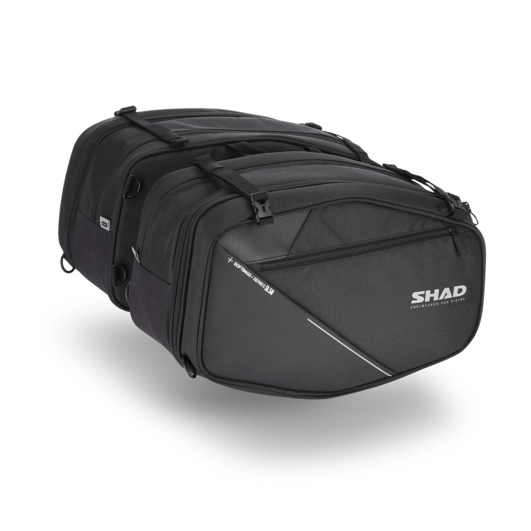 The SL58 side bags have an adjustable capacity of up to 24 liters per bag, with capacity for a modular helmet (ECE 22.06).