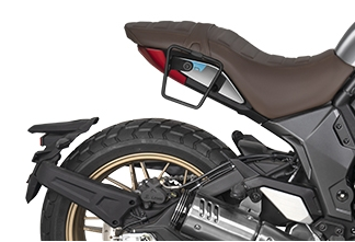 Specific side bag holder for saddle bag SR, which offers greater safety and resistance when using side bags. It is characterized by a comfortable and fast installation, always keeping the aesthetics of the motorcycle.