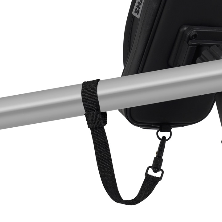 Smartphone holder compatible with all motorcycles. Quick and easy to install to the handlebar, thanks to its universal mounting system, adjustable even with gloves. Antiglare visor, reinforced cable outlet and internal shims for different phone sizes. Safety strap included. Also compatible with other vehicles such as quads, bicycles or scooters.