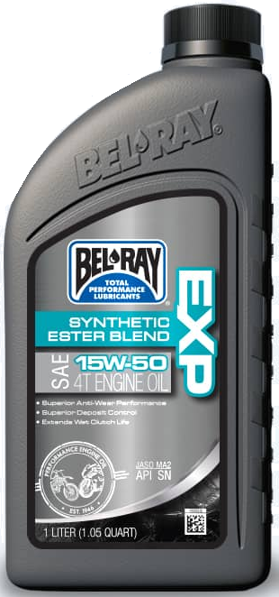 Bel-Ray EXP Synthetic Ester Blend 4T Engine Oil is a 4-stroke motorcycle oil that combines the finest quality synthetic oils with select mineral base oils ensuring the highest level of protection for all 4-stroke motorcycles. Contains shear resistant VI improvers to resist viscosity breakdown. Meets the performance requirements of API SN and JASO MA2. Suitable for air-cooled/liquid-cooled 4-stroke engines and wet clutches.